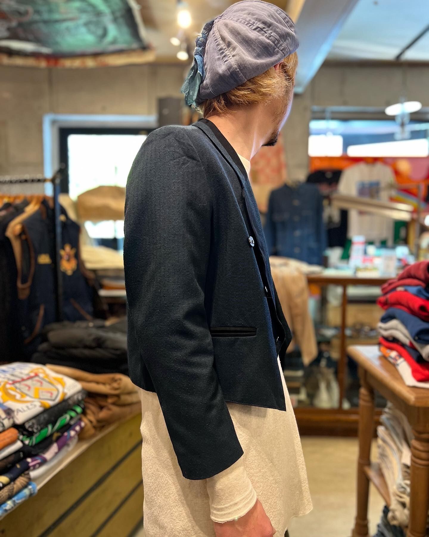 着丈が短めなダブルのスーツジャケットです。