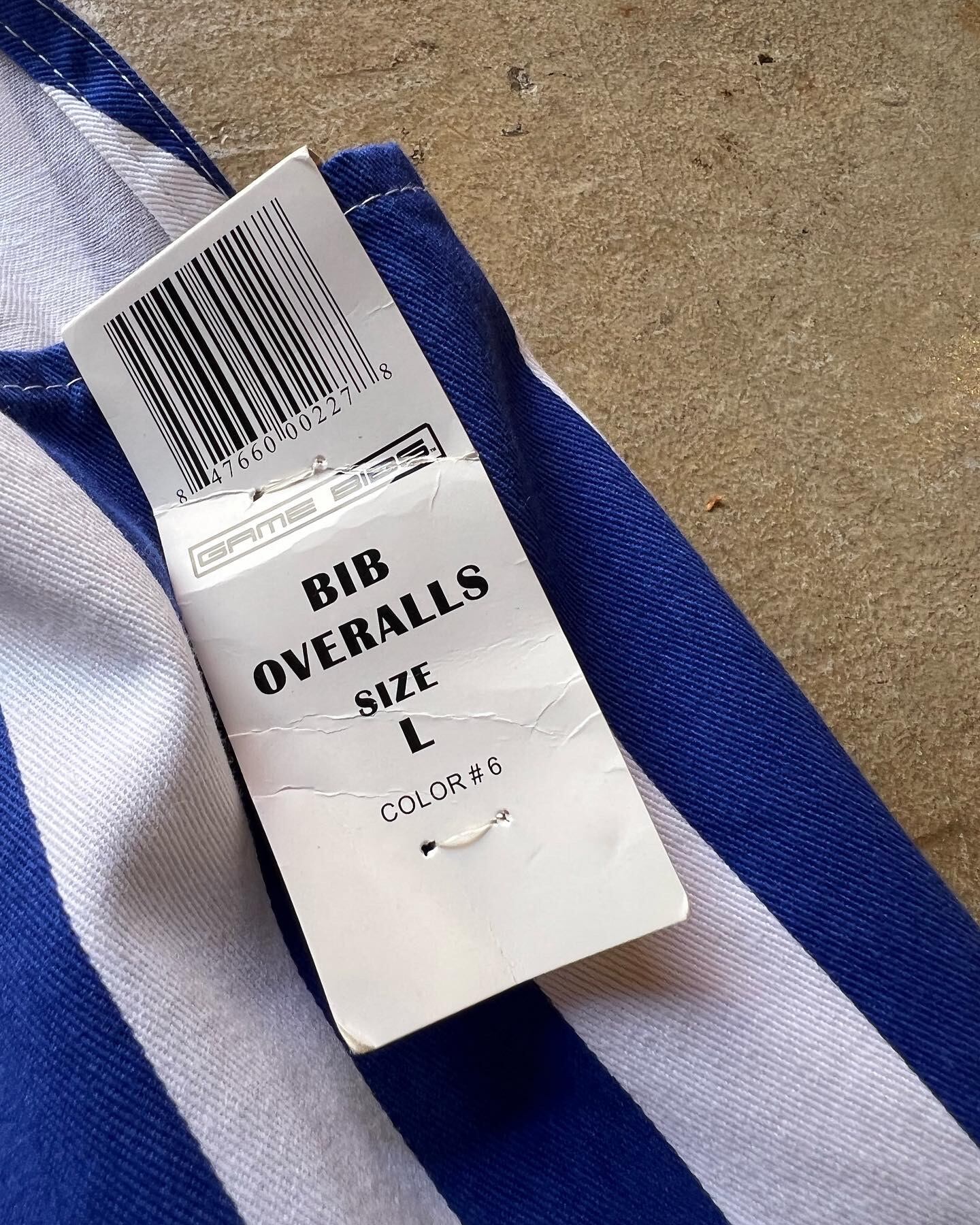 ストライプ柄のオーバーオールです。こちらは未使用の商品になります。