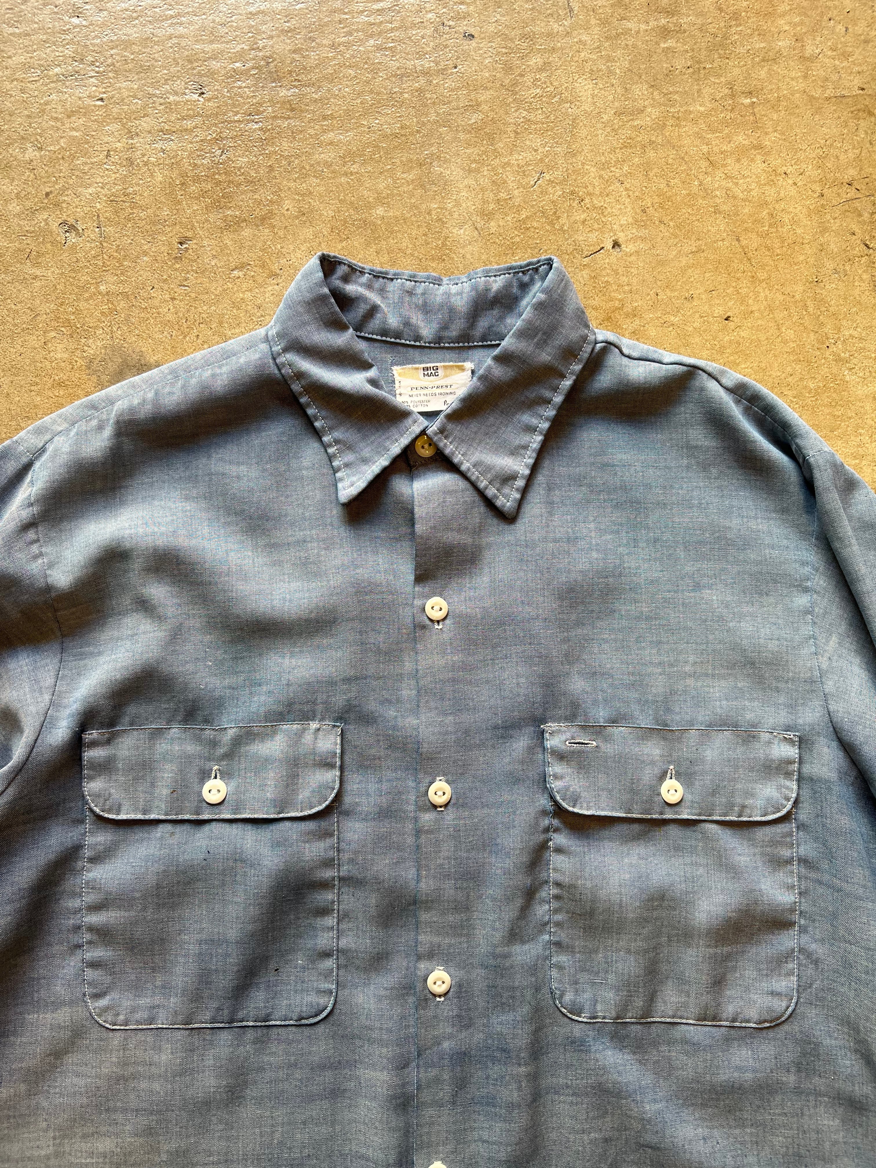 US古着 70s BIGMAC 刺繍 シャンブレーシャツ サイズL位